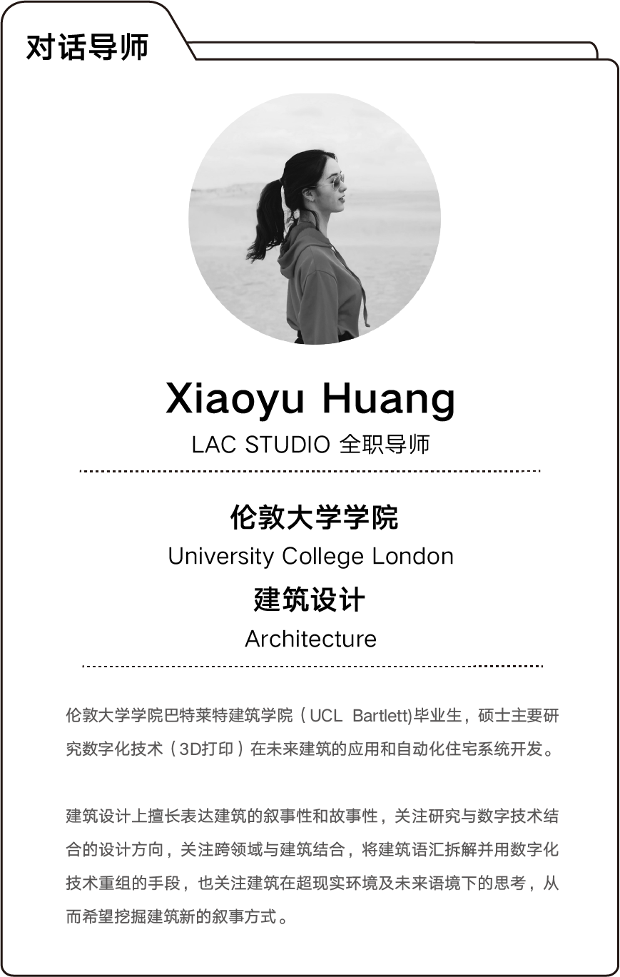 H:在UCL读书的过程中,UCL的教授甚至学生,都在思考未来:未来的建筑会变成什么样?未来的世界会变得怎么样?我们该怎么用建筑去解决问题?UCL一直在引导学生去构筑未来世界,了解建筑的方方面面,甚至会要求学生学习写代码、经济学、物理学、生物学等相关知识,以交叉学科打破了建筑的壁垒,与我在国内本科院校学习的传统建筑非常不同,这也是当时我选择UCL的原因。