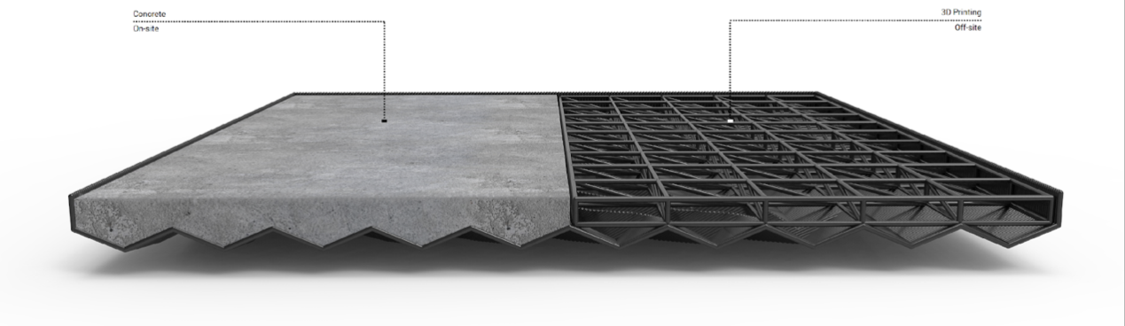 项目“Printcast”旨在设计出一个将3D打印和混凝土现浇相结合的自动化住宅建造系统,将电脑运算出来的建筑结构分割成不同分散的体块,通过3D打印出体块,现场组装成大尺度住宅以后混凝土浇灌,从而实现高效的全数字化过程。