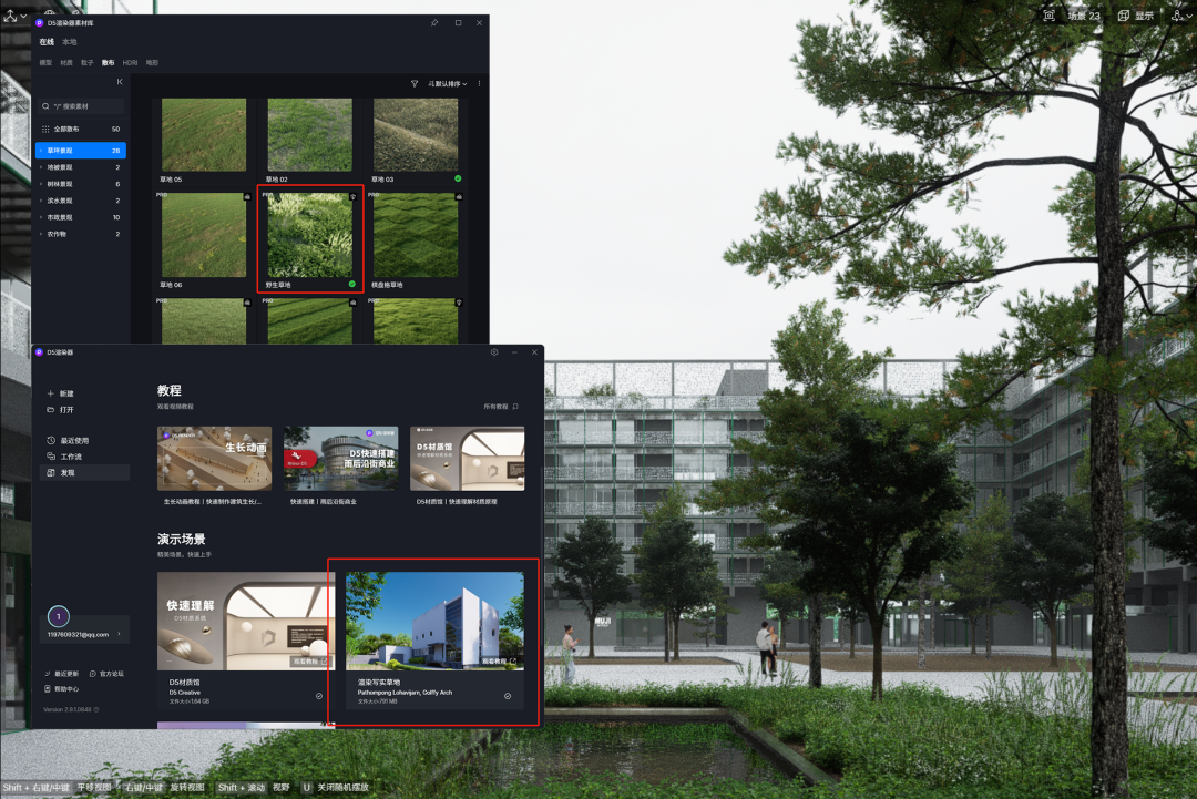 Tip:关于配景素材的积累,我一般会去D5官方论坛里的场景列车分享里面下载别人好的作品,把里边好的配景素材存到自己本地,这次用的树就是从渲染器首页的案例示范小屋里面存的。